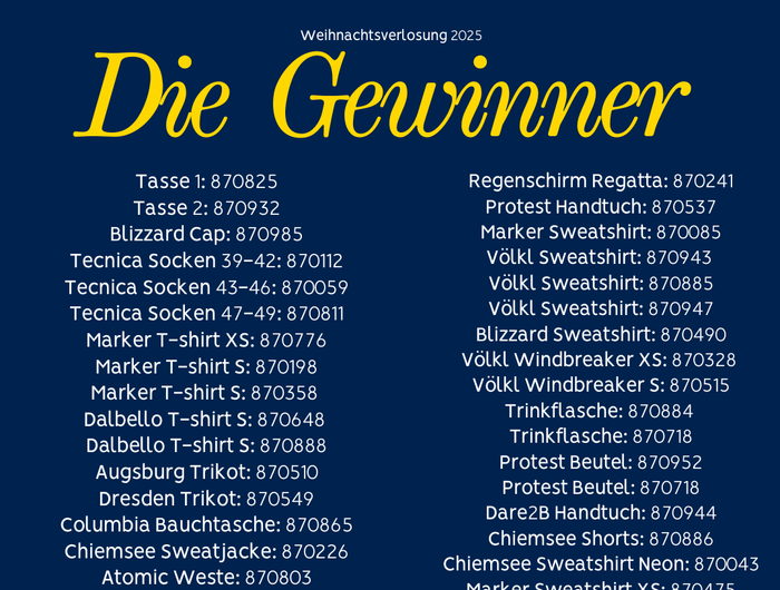 Alle Gewinne müssen bis zum 06.01.2026 abgeholt werden. Alle übrigen Gewinne werden gespendet.